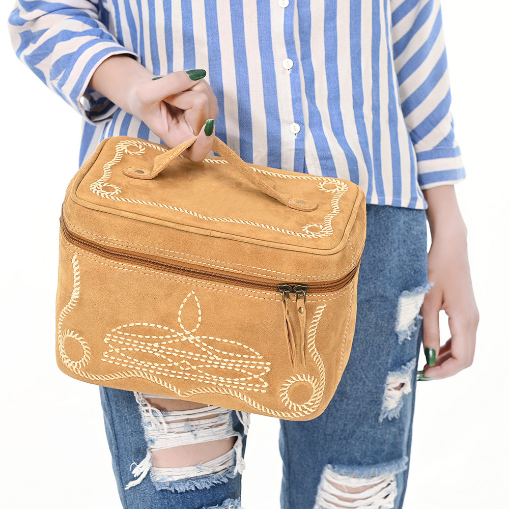 With a durable top handle, double-zipper closure, and structured rectangular shape, this case is ideal for storing makeup, grooming items, or travel accessories. Whether at home or on the go, this case combines Western style with practical function.