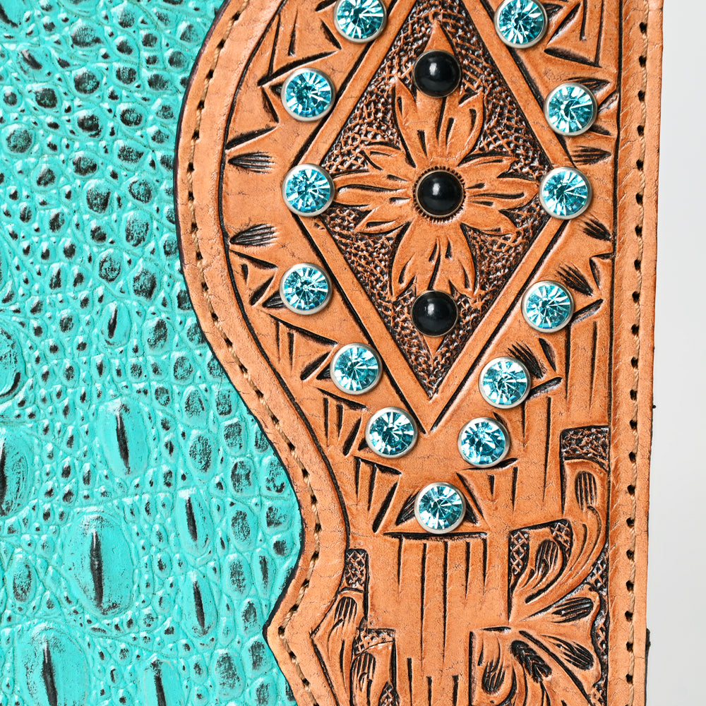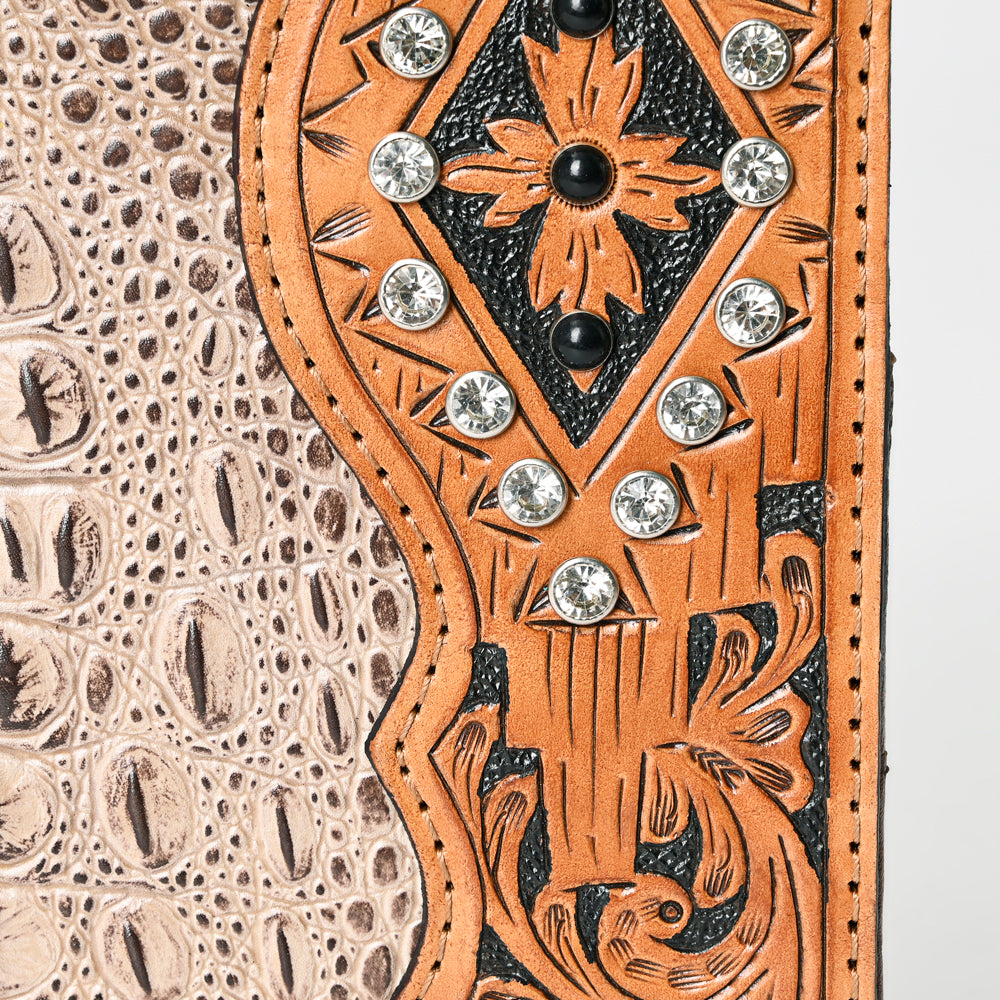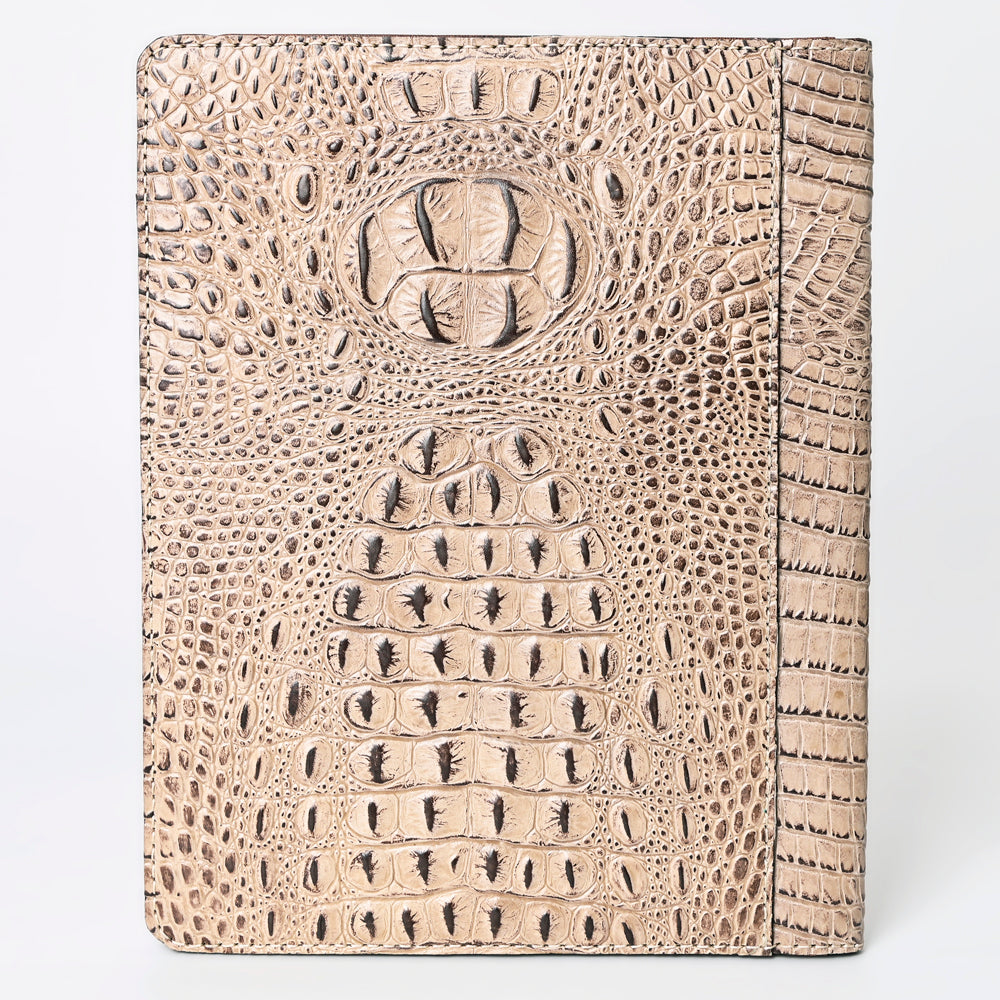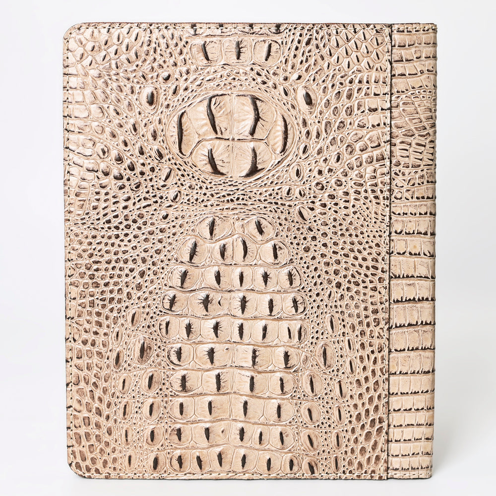 Redefine sophistication with the Eleanor Western Leather Portfolio by American Darling. Crafted for professionals with an eye for Western artistry, this exquisite organizer features a premium crocodile-embossed cowhide leather exterior, enhanced with hand-tooled floral corner accents in rich tan and black detailing.