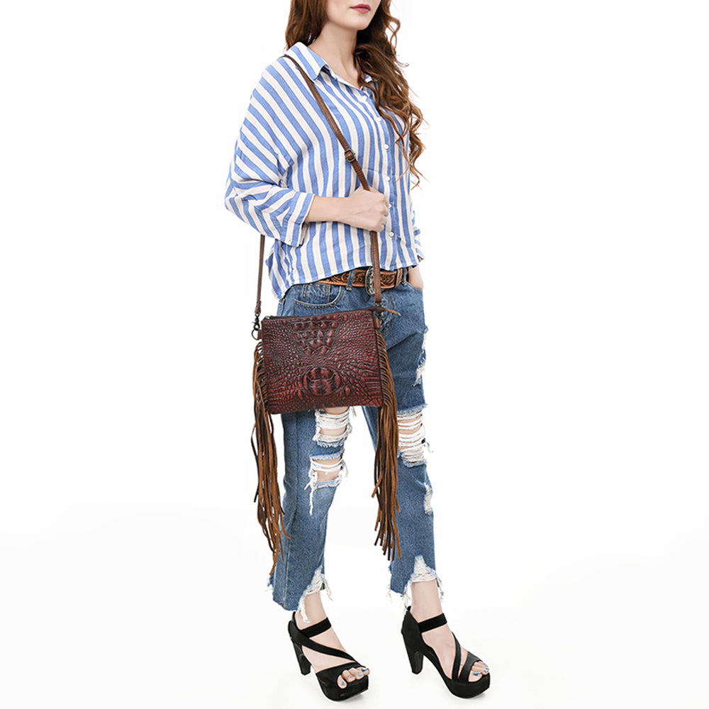 LC-ADBG838 Crossbody Crocodile Embossed Genuine Western Leather Women Bag