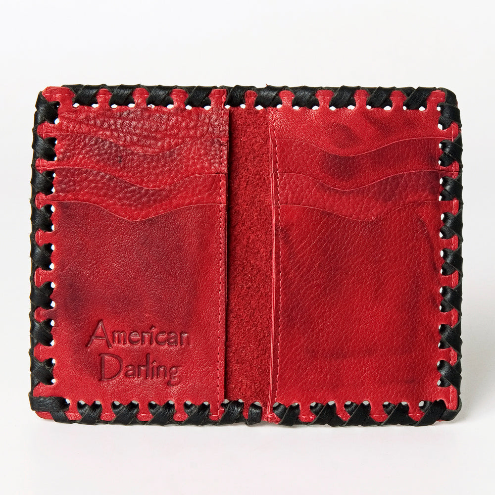 LC-ADBGM246D Red & Black Leather Bifold Wallet - Vertical Western Whipstitch Card Holder