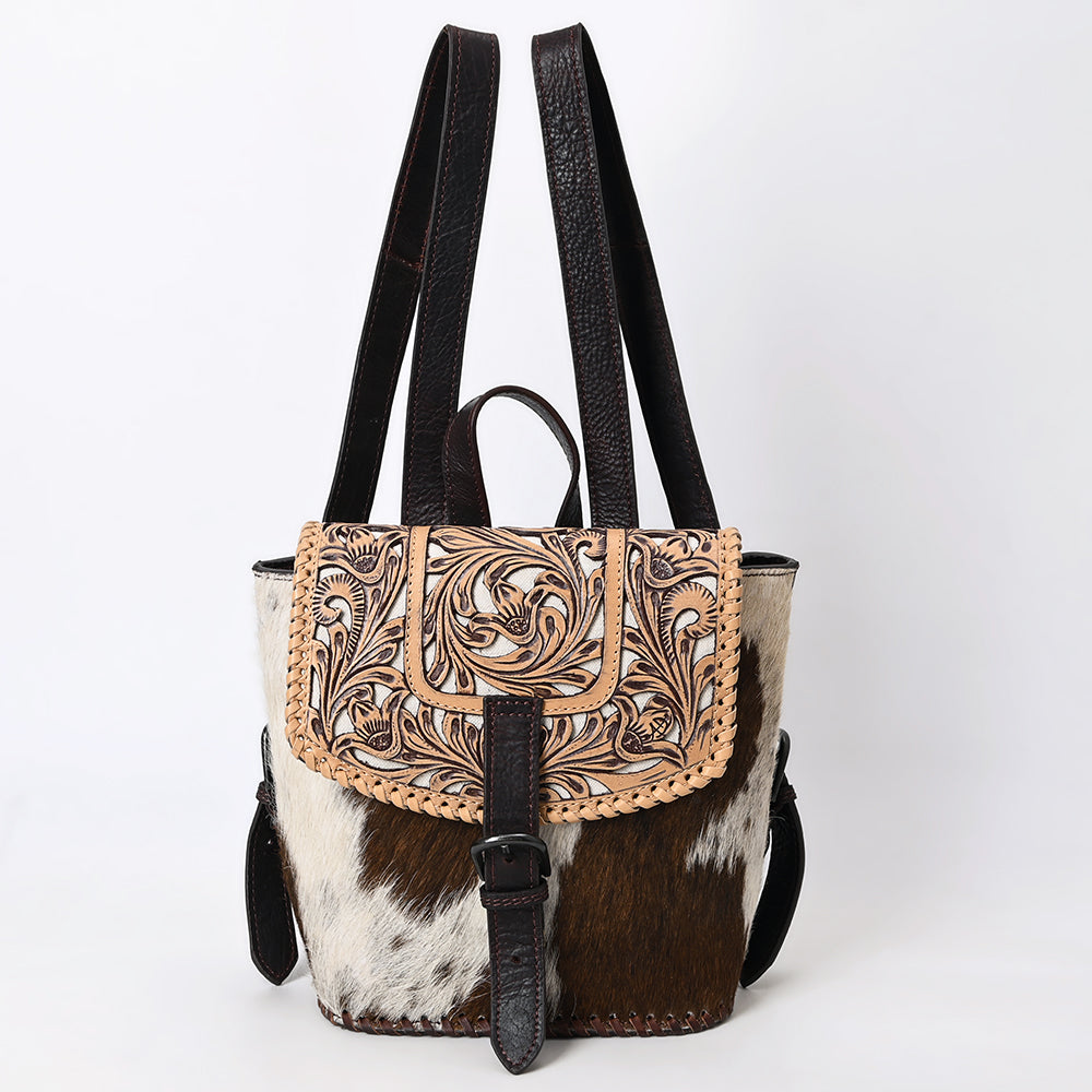 Elevate your Western style with this handcrafted mini backpack from American Darling. Designed with a rich mix of genuine hair-on cowhide and hand-tooled leather, this compact rucksack blends rugged charm with artisan detail. Featuring adjustable leather shoulder straps and a secure buckle flap closure, it’s perfect for rodeo days, festivals, or hands-free everyday wear.