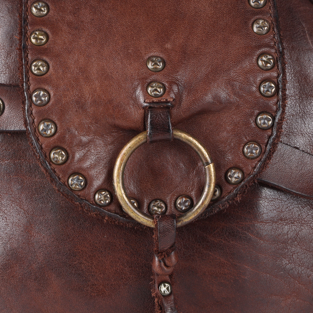 Enhanced with decorative rivets, adding a touch of rugged elegance.