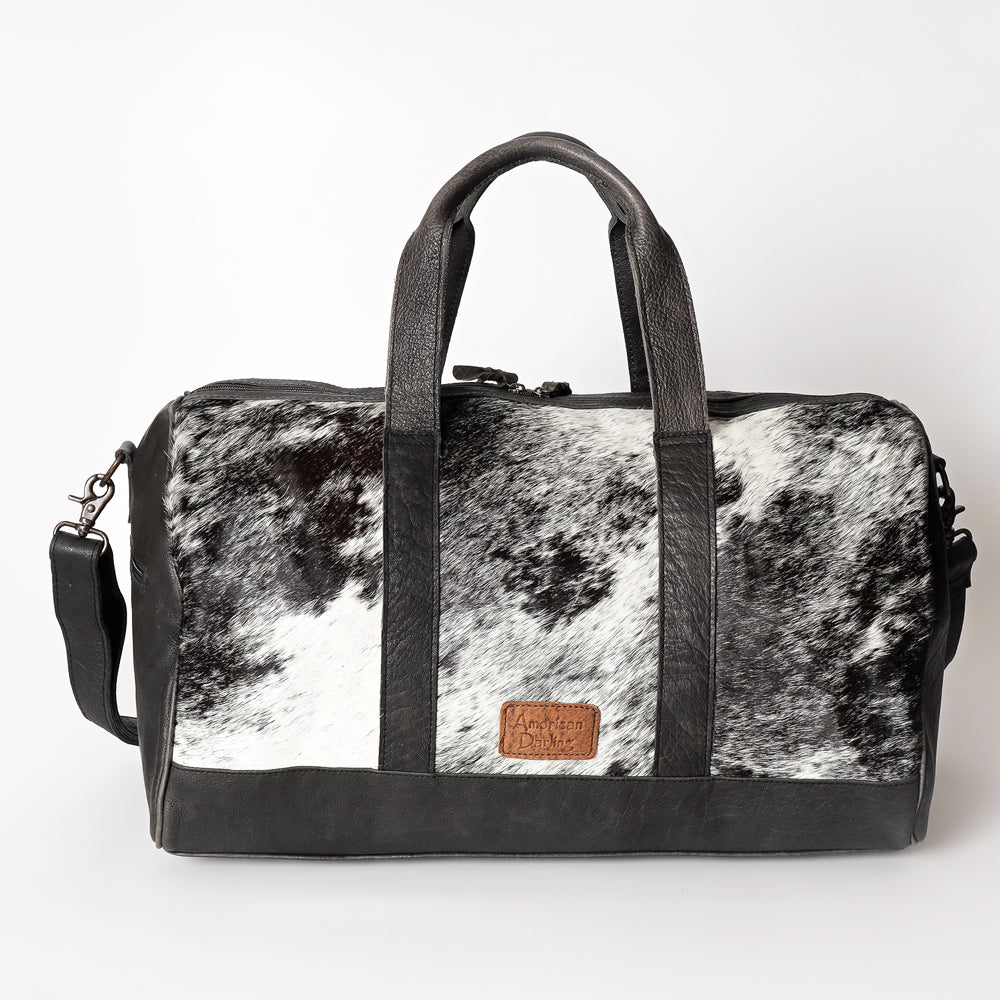 LC-ADBGS174BKW Black & White Cowhide Leather Duffle Bag - Western Travel Weekender