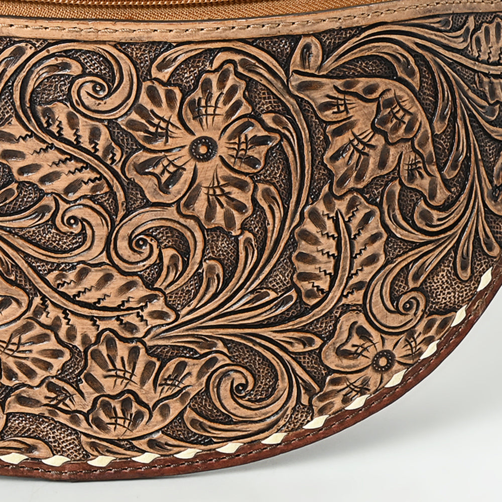 ADBG1531 Hand-Tooled Leather Belt Bag - Western Floral Tooled Fanny Pack