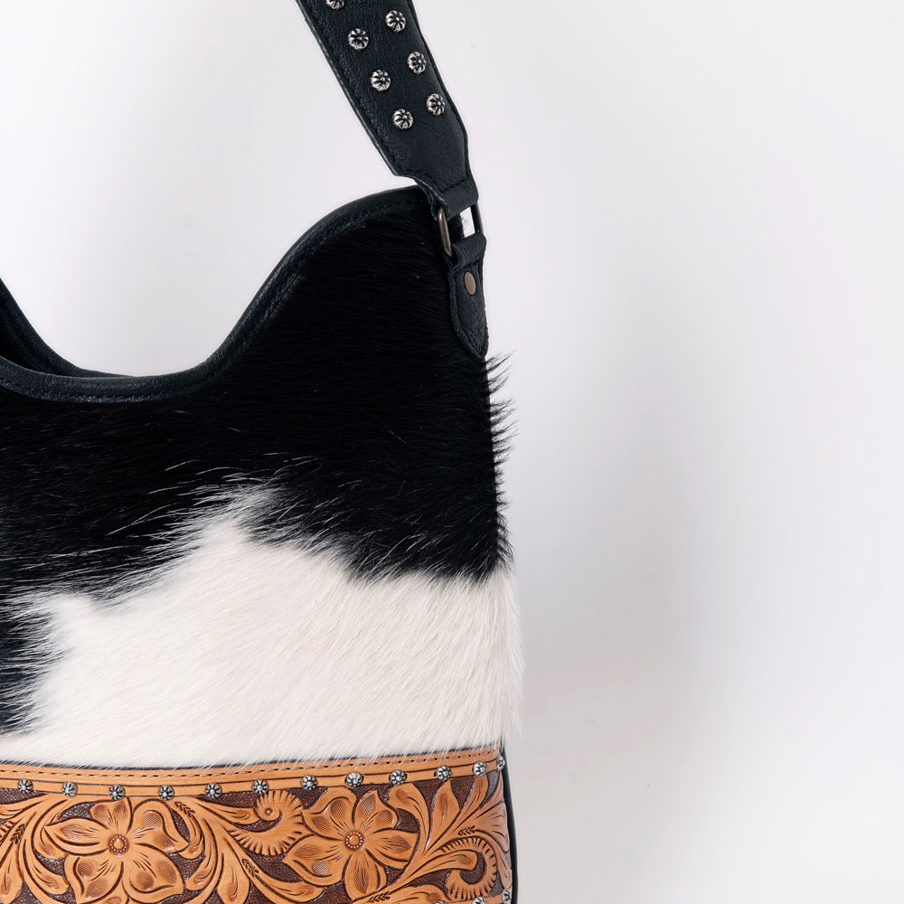 The handpicked cowhide hair-on genuine leather not only adds a soft and tactile element but also serves as an embellishment, enhancing its overall western appearance.