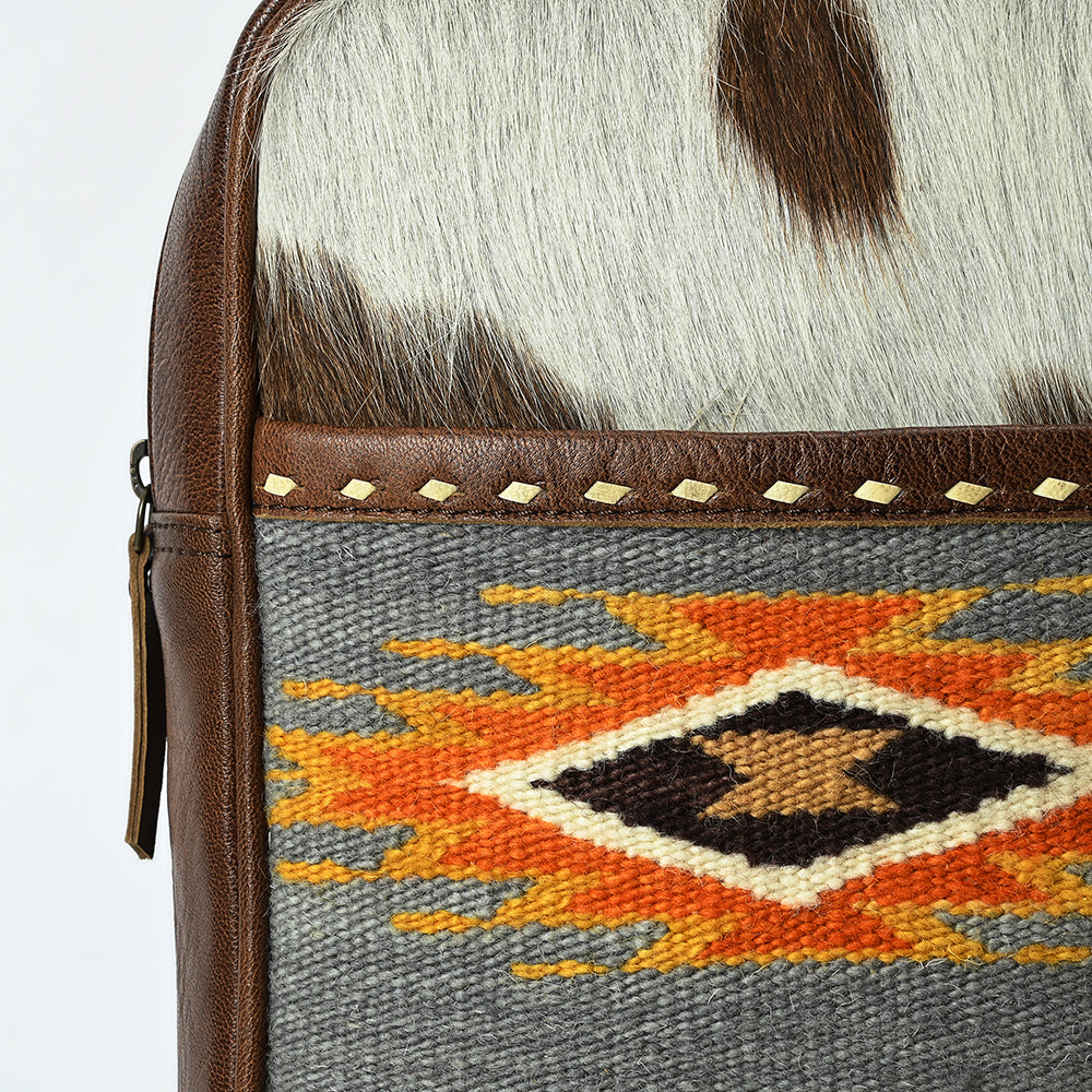 ADBG1554 Southwestern Cowhide & Leather Sling Bag with Woven Aztec Panel