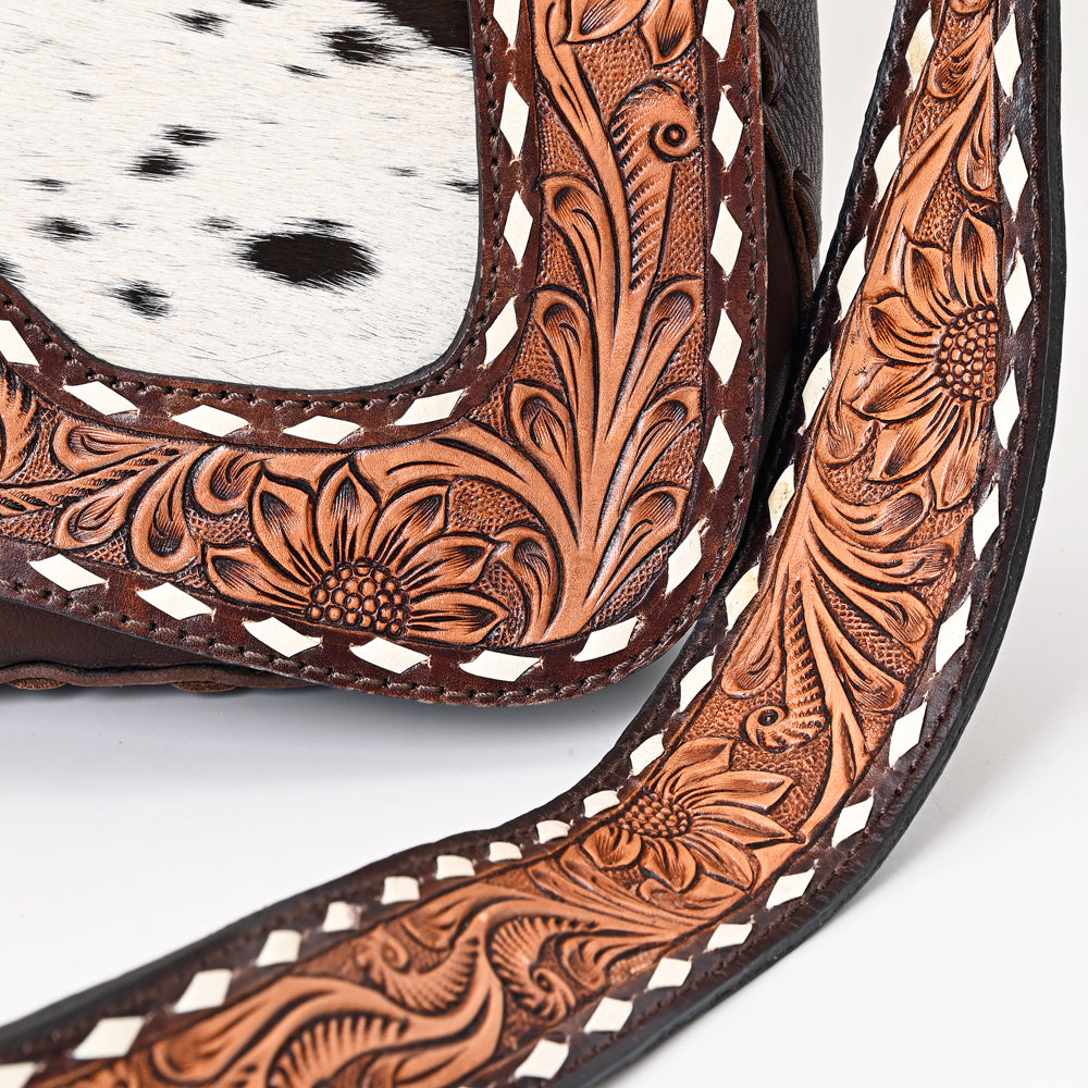 ADBGA377 Genuine Leather Western Crossbody Bag with Tooled Strap & Hair-On Hide