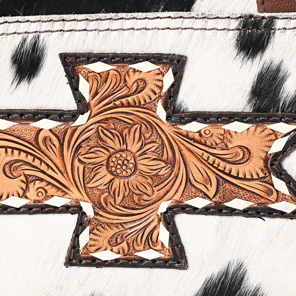 ADBGA395 Hair-On Cowhide Mini Bible Tote with Tooled Leather Cross Patch