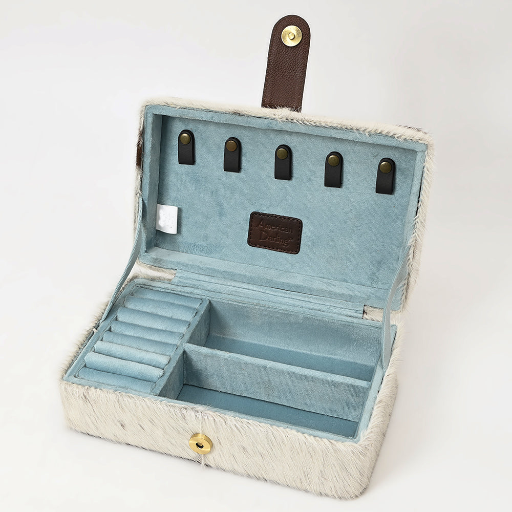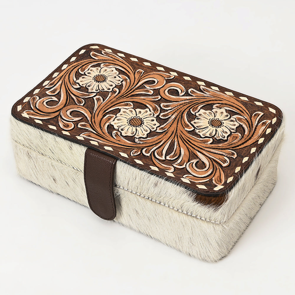 ADBGA422 Genuine Western Leather Jewelry Box Hand Tooled Floral & Cowhide by American Darling