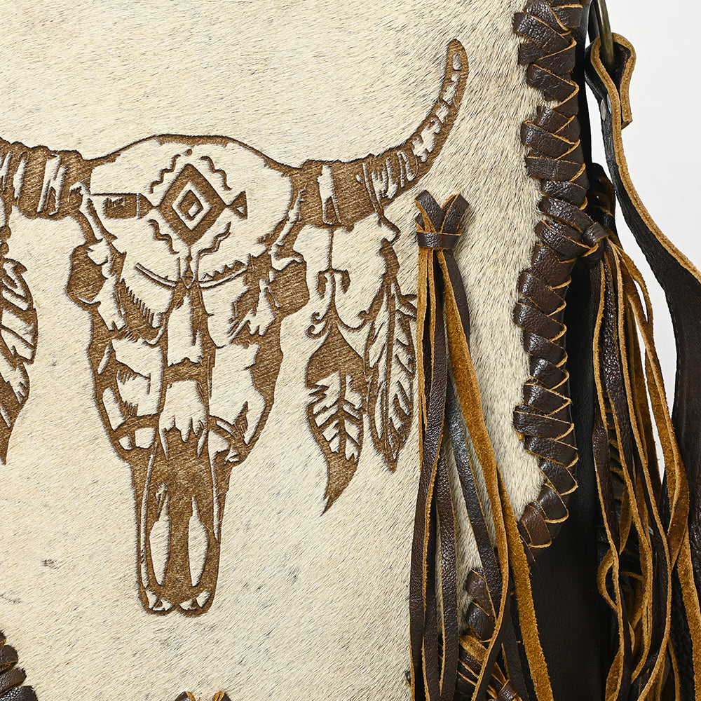 ADBGM416 Engraved Designed Hair-On Fringe Crossbody Bag with Braided Trim - American Darling
