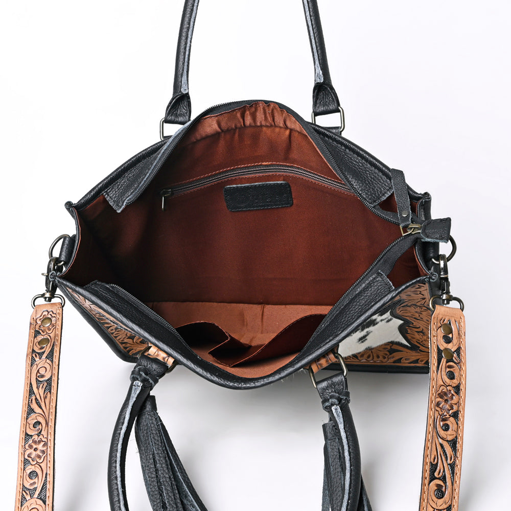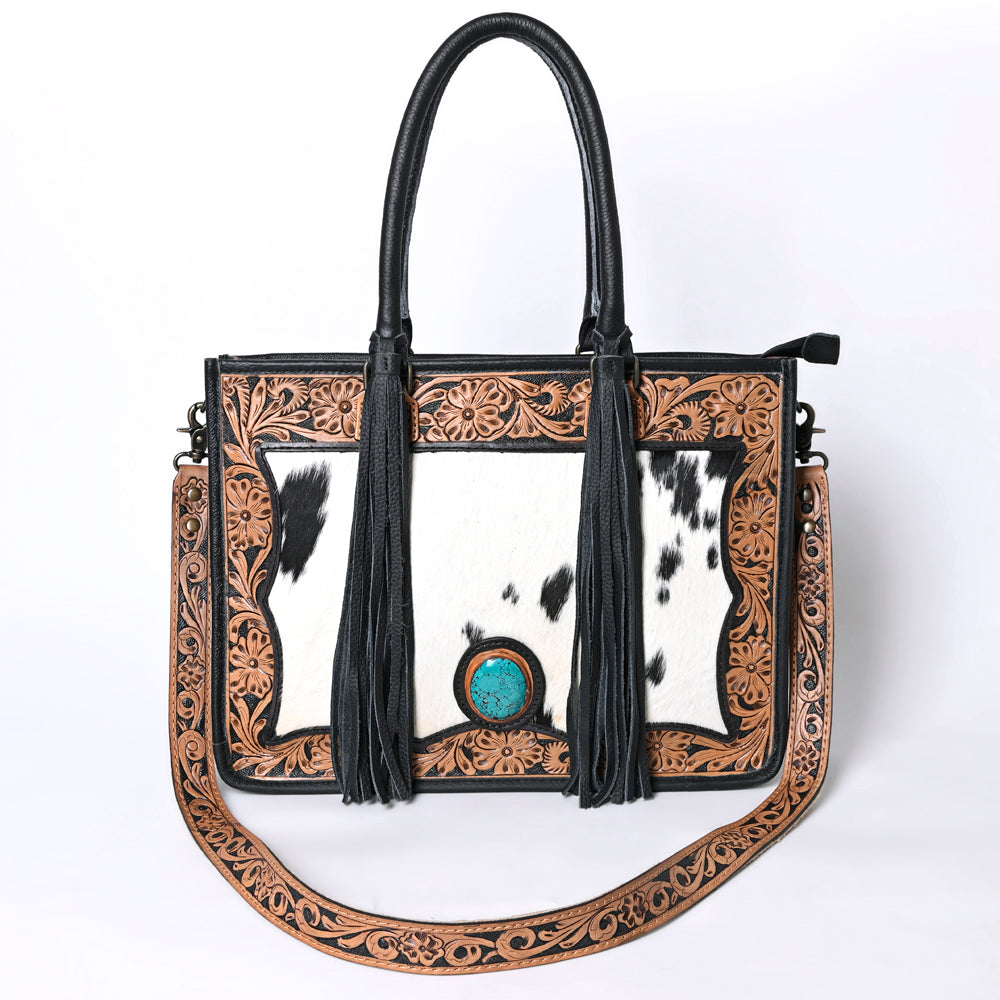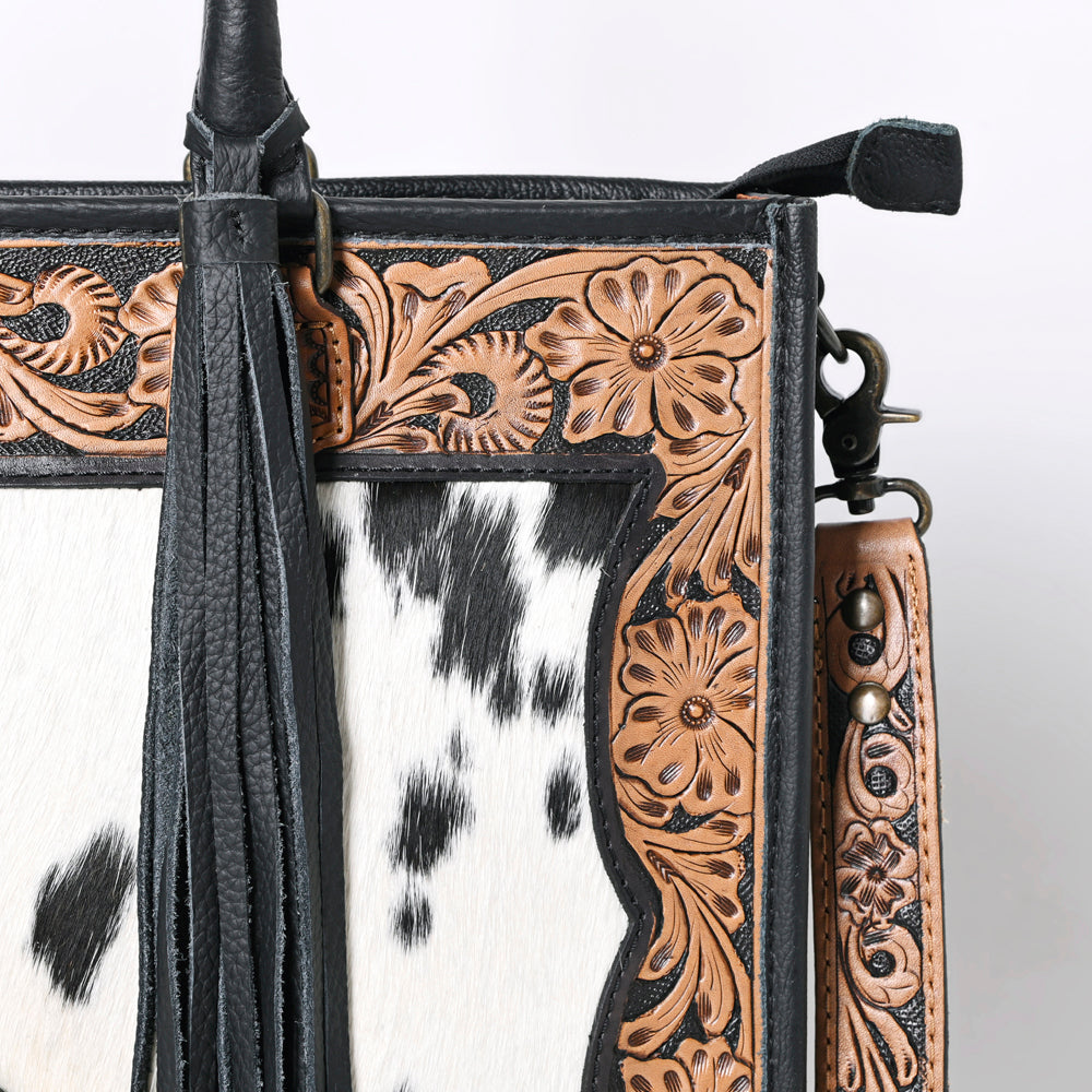 The handpicked cowhide hair-on genuine leather not only adds a soft and tactile element but also serves as an embellishment, enhancing its overall western appearance.