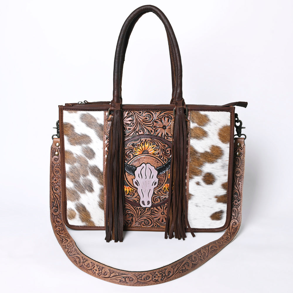 The handpicked cowhide hair-on genuine leather not only adds a soft and tactile element but also serves as an embellishment, enhancing its overall western appearance.