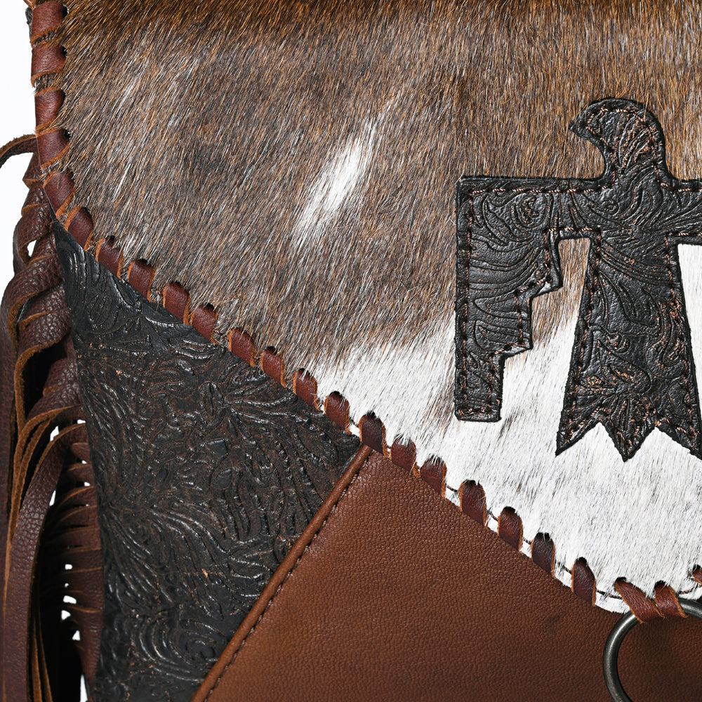 The handpicked cowhide hair-on genuine leather not only adds a soft and tactile element but also serves as an embellishment, enhancing its overall western appearance.