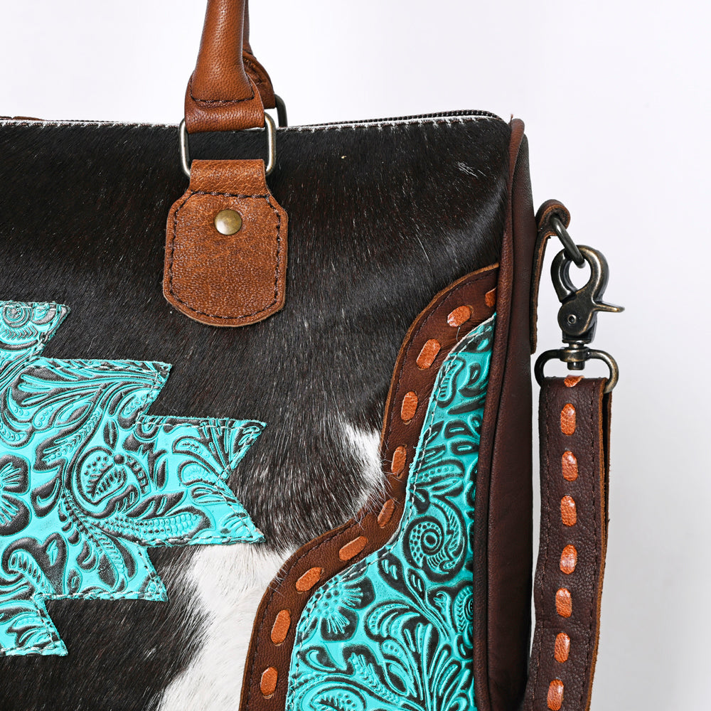 The handpicked cowhide hair-on genuine leather not only adds a soft and tactile element but also serves as an embellishment, enhancing its overall western appearance.