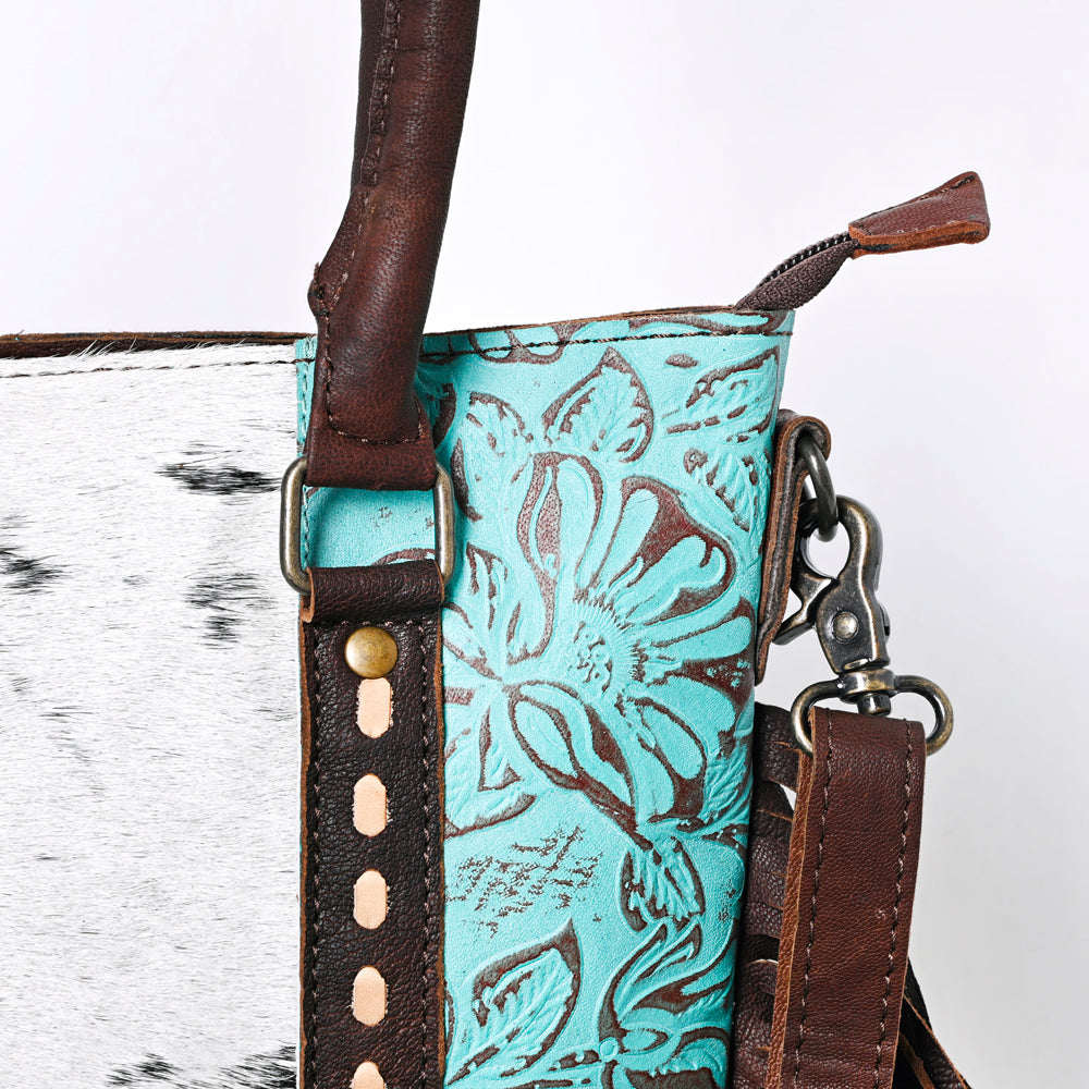 The handpicked cowhide hair-on genuine leather not only adds a soft and tactile element but also serves as an embellishment, enhancing its overall western appearance.