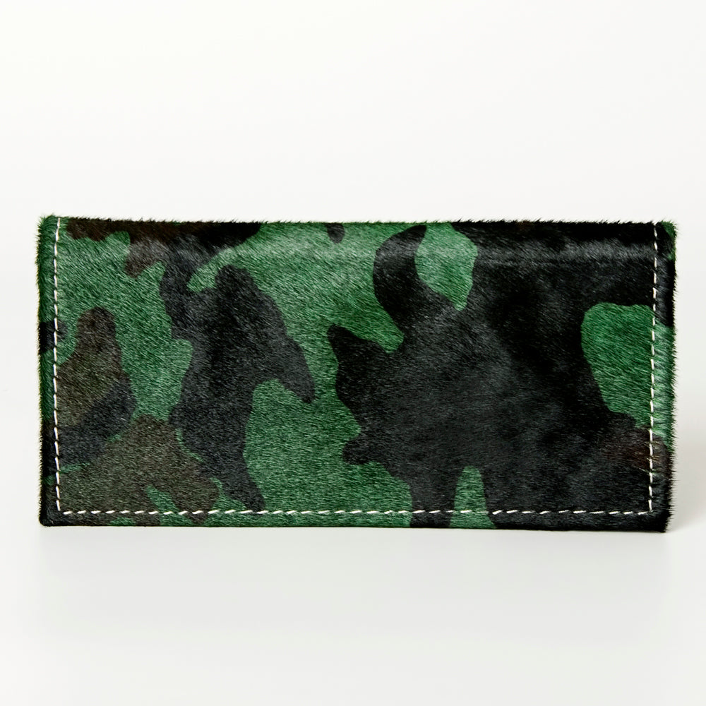 Crafted for Western elegance and rustic functionality, this genuine hair-on cowhide wallet features a stunning natural pattern. Each wallet showcases a one-of-a-kind hide texture, making it as unique as its owner. Hand-stitched edges add durability and artisan detail, while the slim fold-over design keeps it practical for everyday use. Whether paired with a matching tote or used as a standalone statement piece, this wallet is the perfect balance of rugged charm and refined style.
