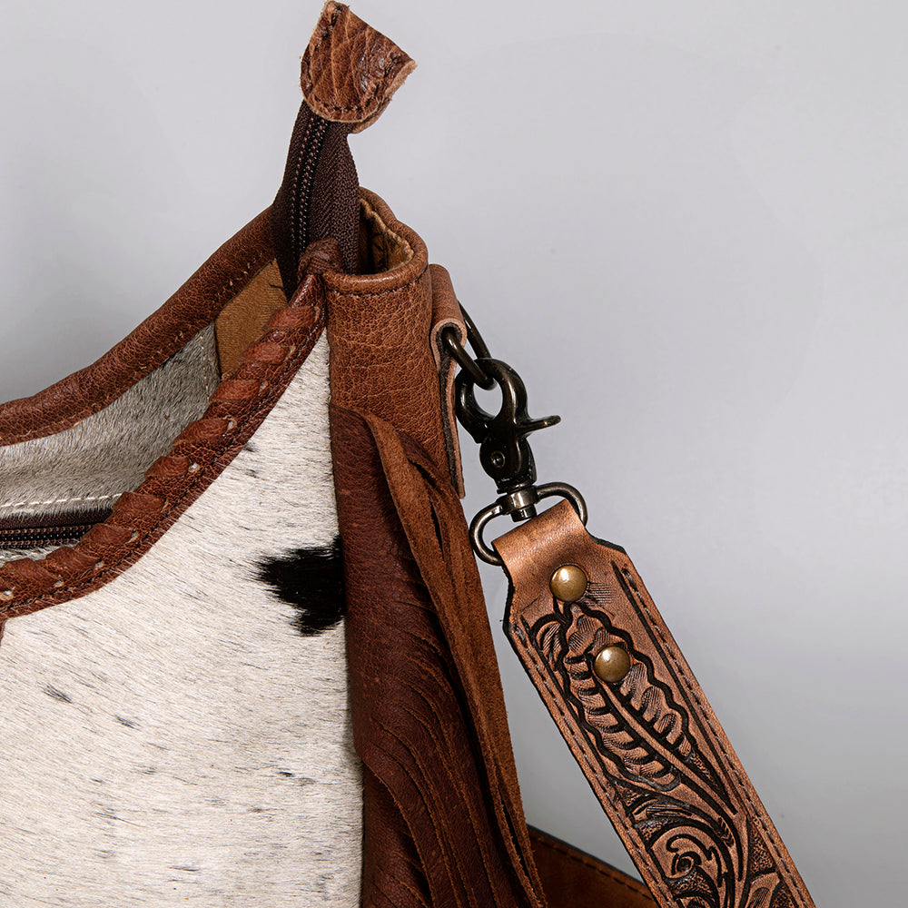 LC-ADBG351 Hair-On Cowhide Hobo Bag with Fringe Tooled Leather Western Shoulder Bag
