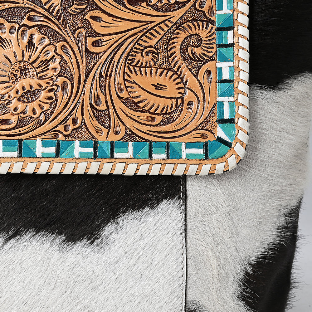The handpicked cowhide hair-on genuine leather not only adds a soft and tactile element but also serves as an embellishment, enhancing its overall western appearance.