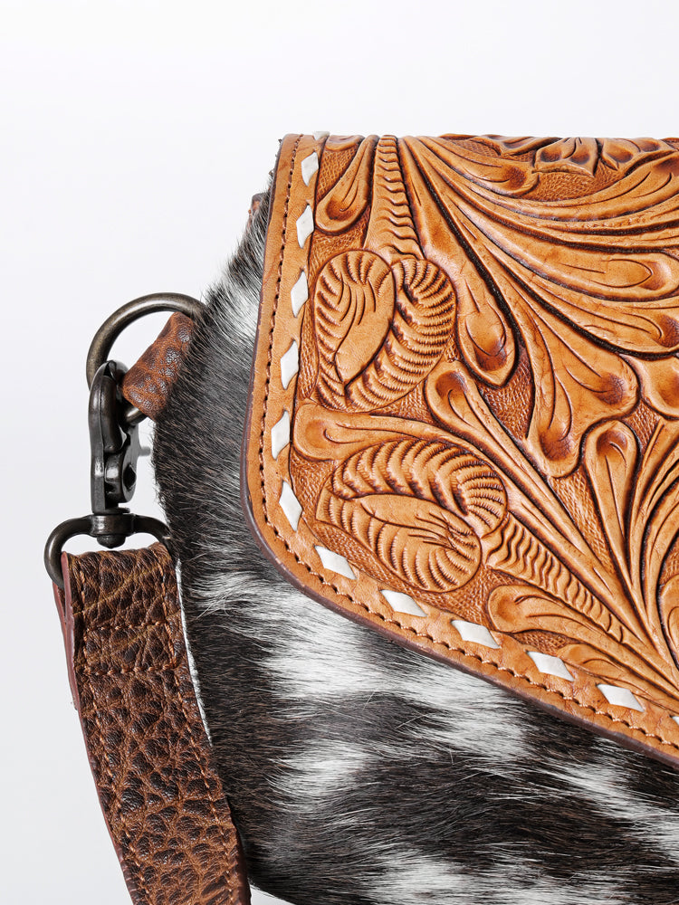 The handpicked cowhide hair-on genuine leather not only adds a soft and tactile element but also serves as an embellishment, enhancing its overall western appearance.