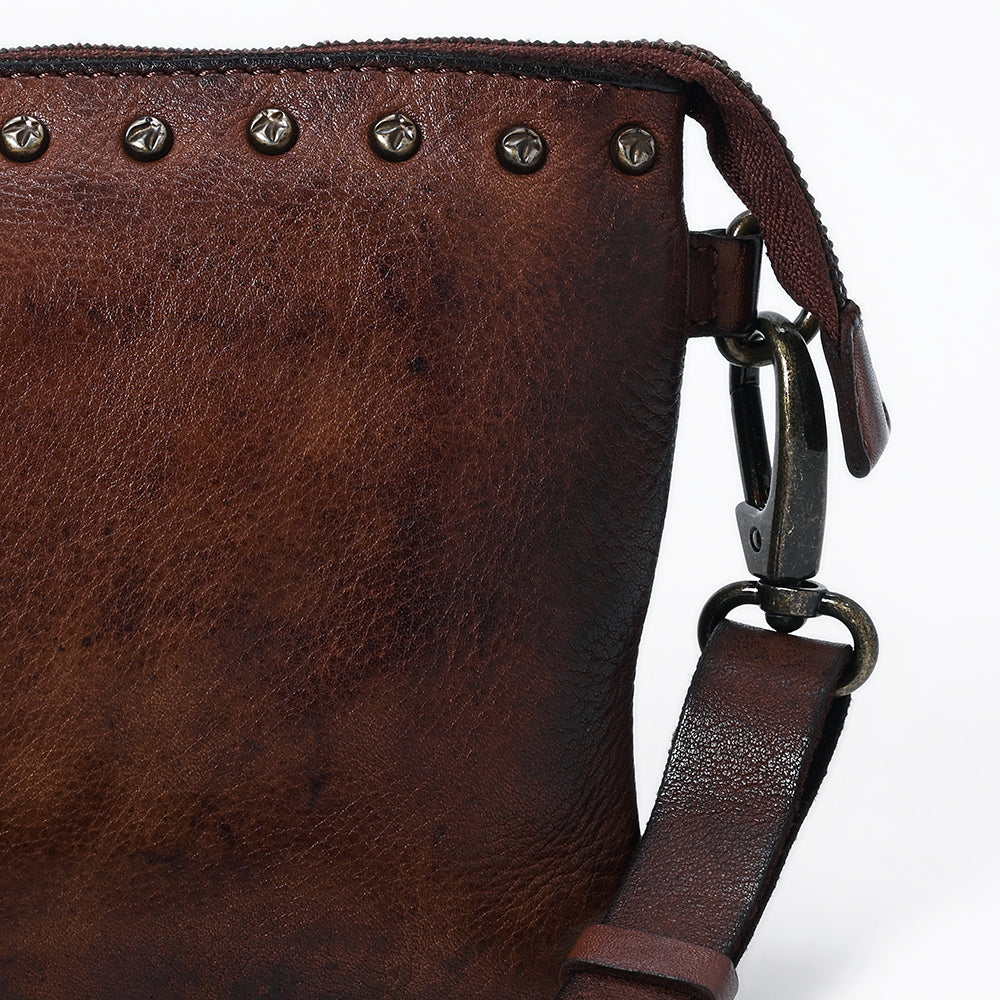 Enhanced with decorative rivets, adding a touch of rugged elegance.