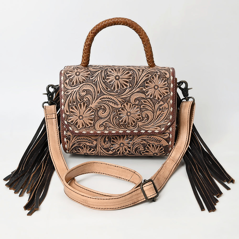 ADBG1583 Hand-Tooled Leather Messenger Bag - Western Clutch Purse with Fringe & Adjustable Strap
