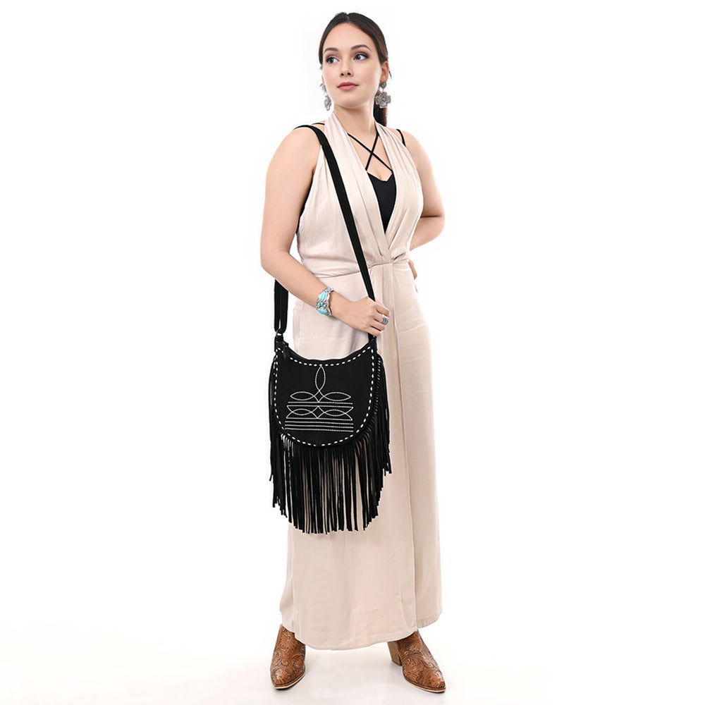 ADBG1625A Suede Fringe Messenger Bag - Western Embroidered Leather Shoulder Purse