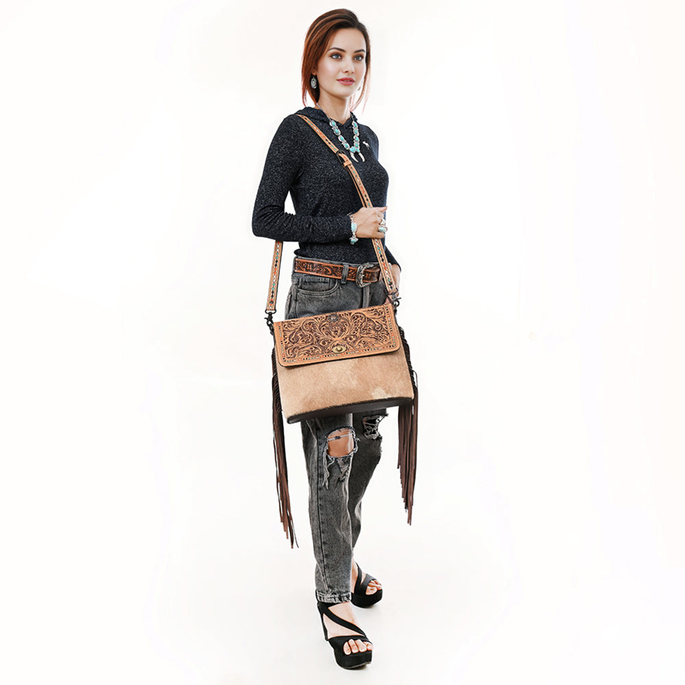 The handpicked cowhide hair-on genuine leather not only adds a soft and tactile element but also serves as an embellishment, enhancing its overall western appearance.