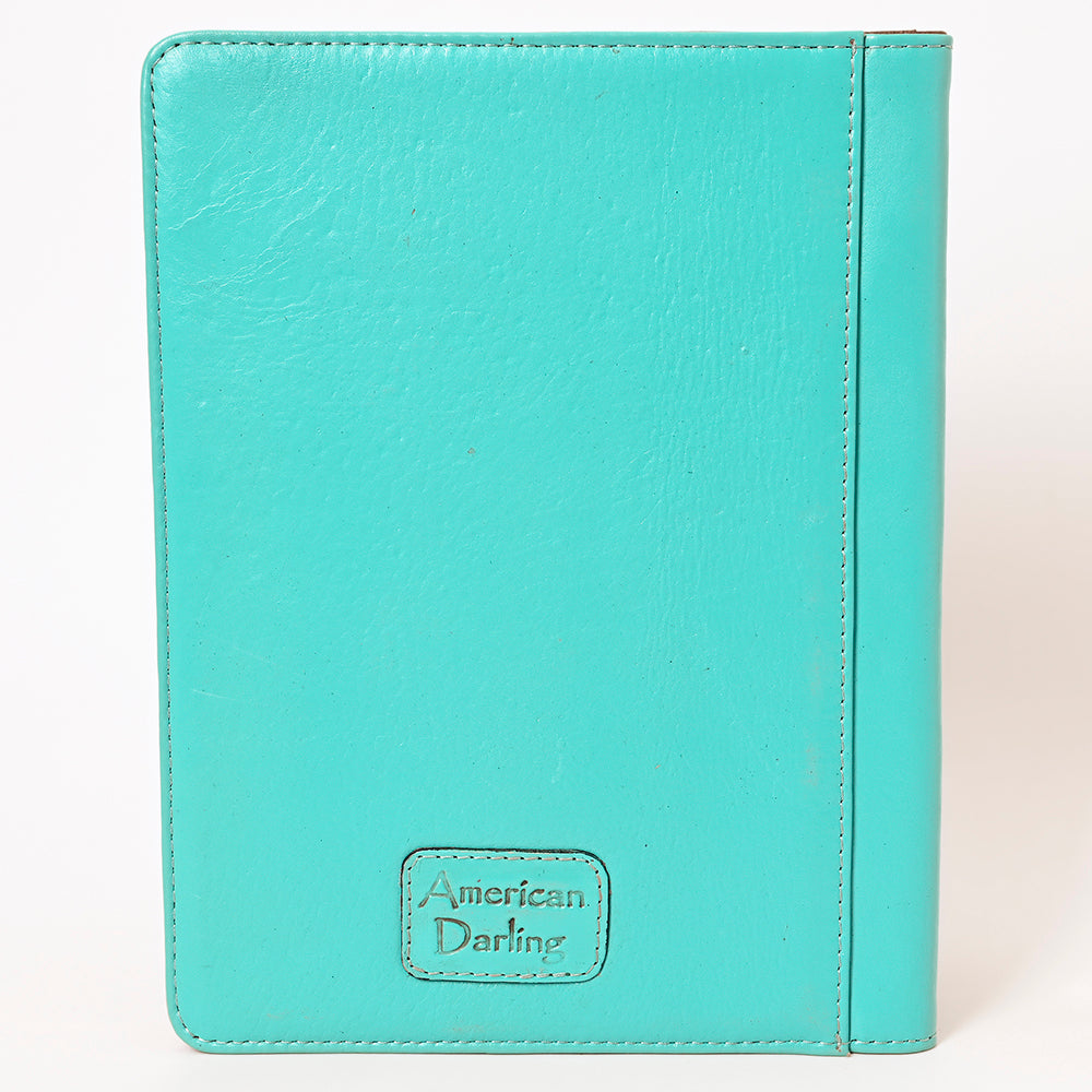 Make a bold statement with this stunning hand-tooled leather portfolio. Crafted from genuine full-grain leather and adorned with intricate Western floral tooling, this folio is the perfect blend of function and fashion. Whether you're headed to a meeting or journaling your next adventure, this piece brings a pop of vibrant Western charm to your essentials.