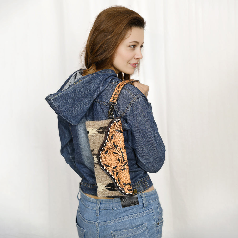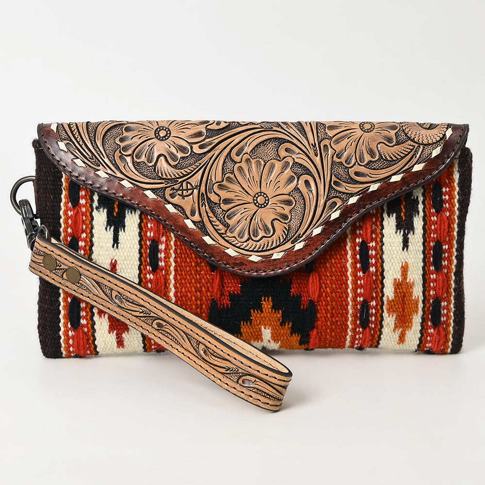 ADBG1477 Hand Tooled Leather & Saddle Blanket Wristlet - Western Clutch by American Darling
