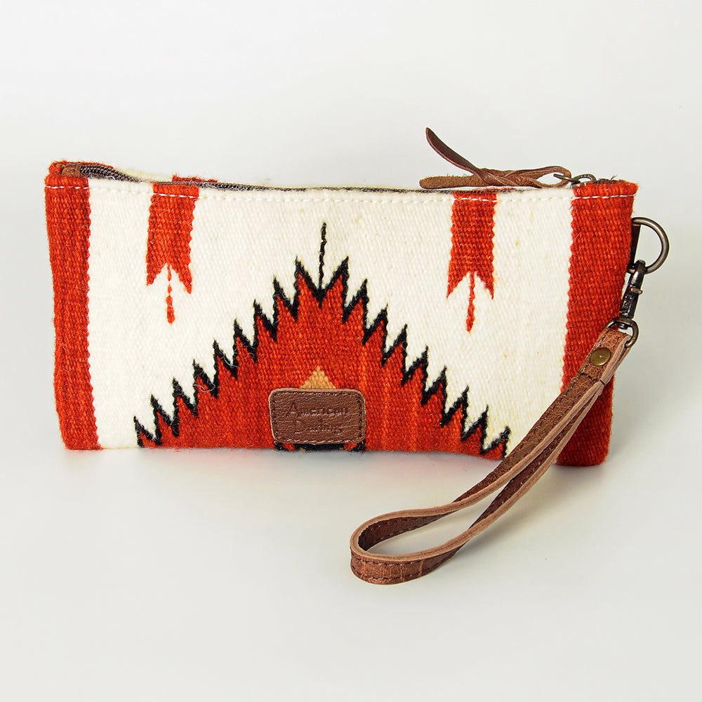 LC-ADBG344 Southwestern Wool Wristlet Clutch with Tribal Pattern and Leather Strap