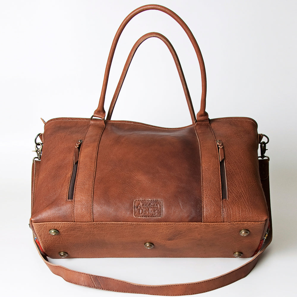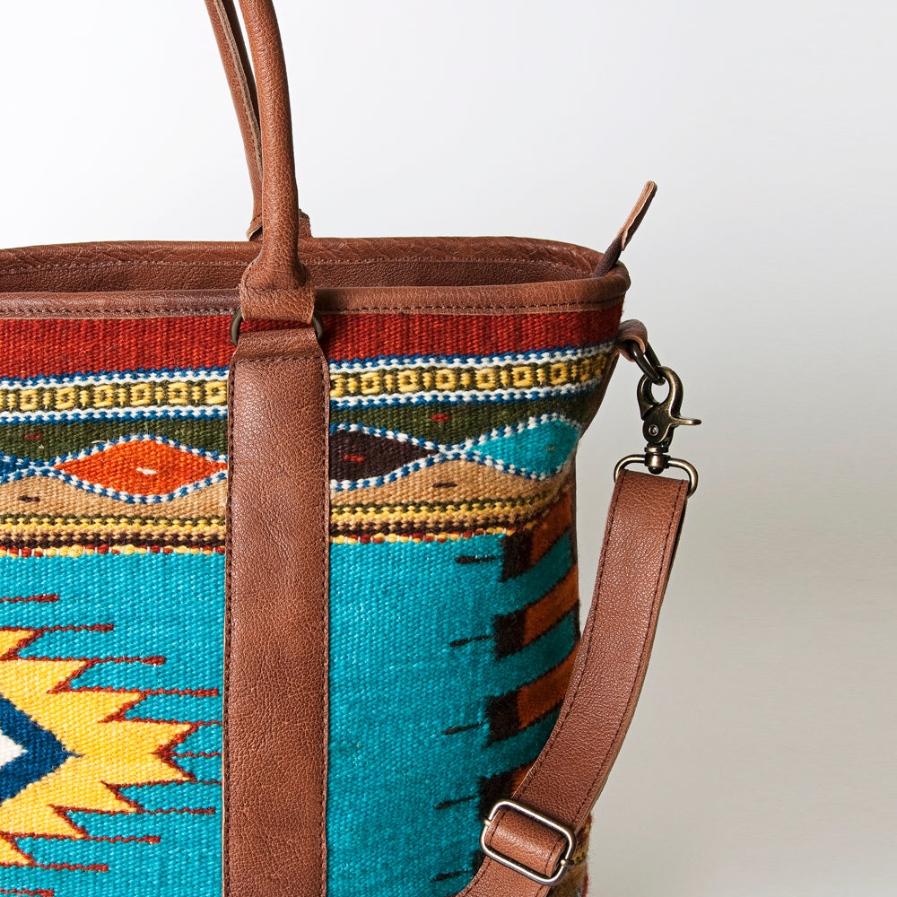 LC-ADBG715 Southwestern Saddle Blanket Tote Bag with Leather Trim & Crossbody Strap