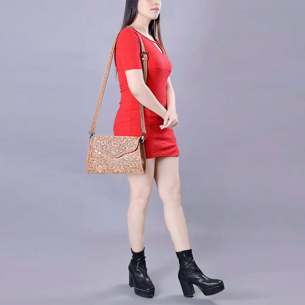 ADBG1137 Hand-Tooled Leather Crossbody Bag - Genuine Western Cowgirl Purse
