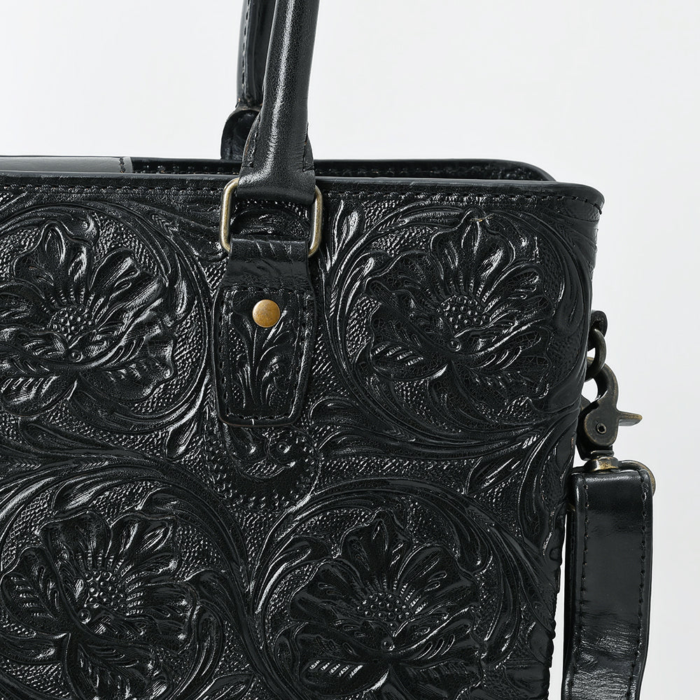 ADBG1539 Black Hand-Tooled Leather Tote Bag - Western Floral Everyday Carry