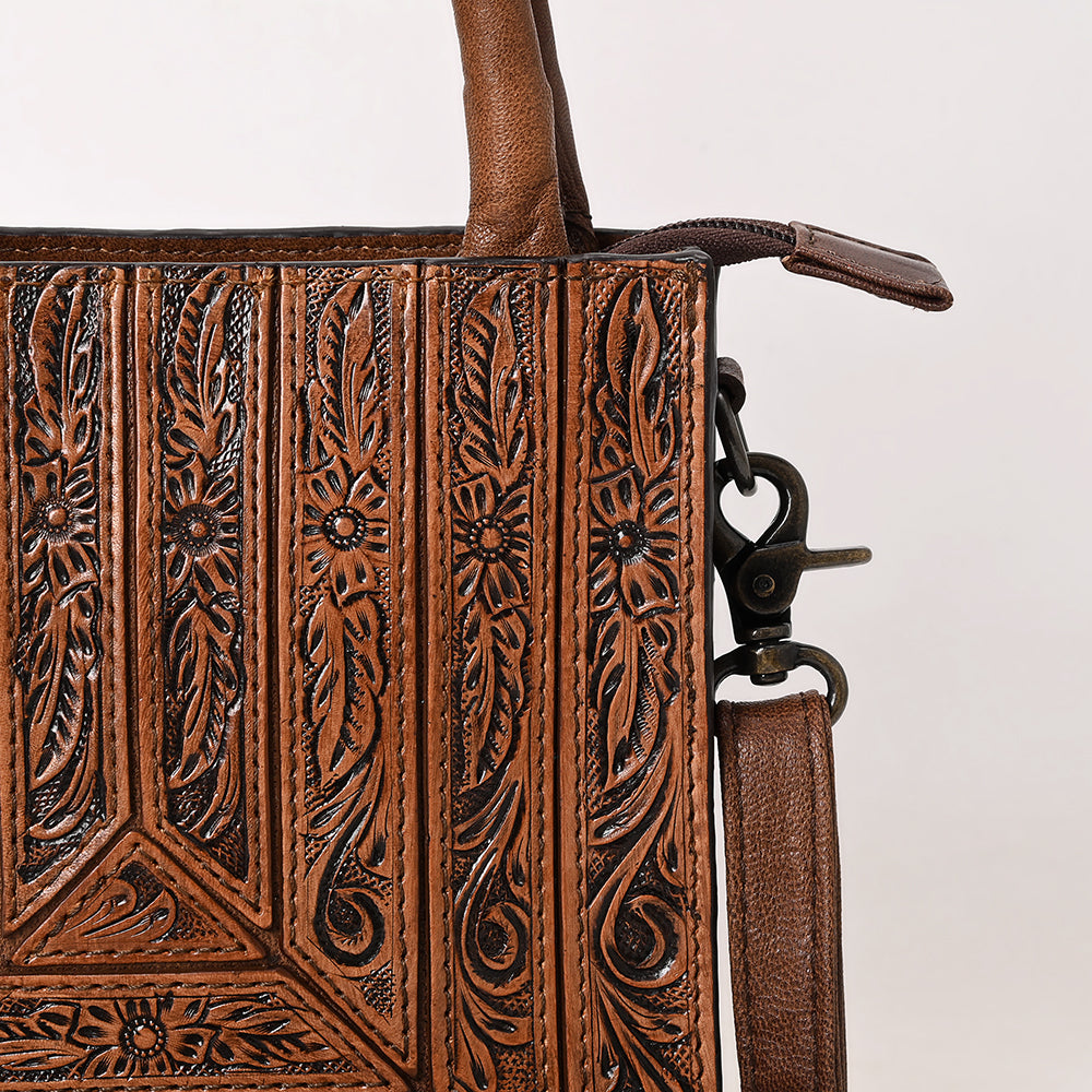ADBG1608 Compact Handtooled Leather Crossbody Tote Bag with Geometric Floral Pattern
