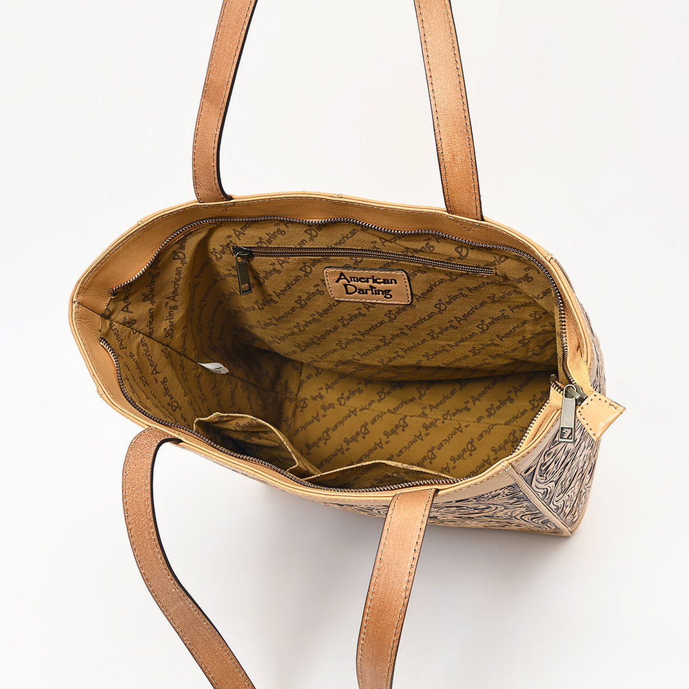 ADBGZ825 Hand-Tooled Leather Western Tote Bag - Large Floral Design