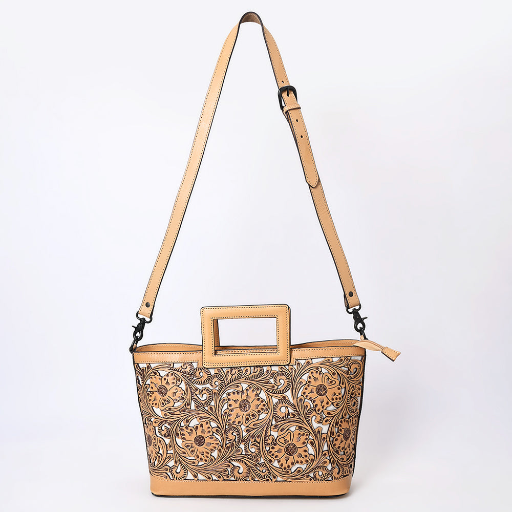 ADBGZ835 Hand-Tooled Leather Western Tote Handbag - Square Handle Design