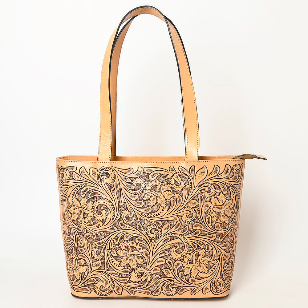 ADBGZ837 Hand-Tooled Leather Tote Bag - Western Floral Statement