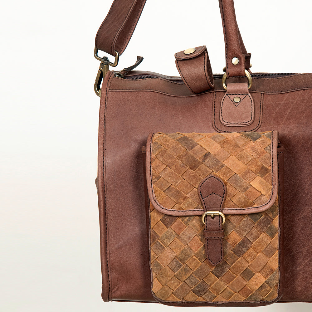 Blending rustic charm with functional design, this Western duffel bag features full-grain leather construction with beautifully woven leather panel pockets. Dual buckle pockets on the front provide quick access to essentials, while the spacious main compartment, reinforced handles, and detachable shoulder strap make it ideal for weekend getaways, rodeo trips, or everyday travel. Built for durability and Western flair, this bag is where craftsmanship meets convenience.