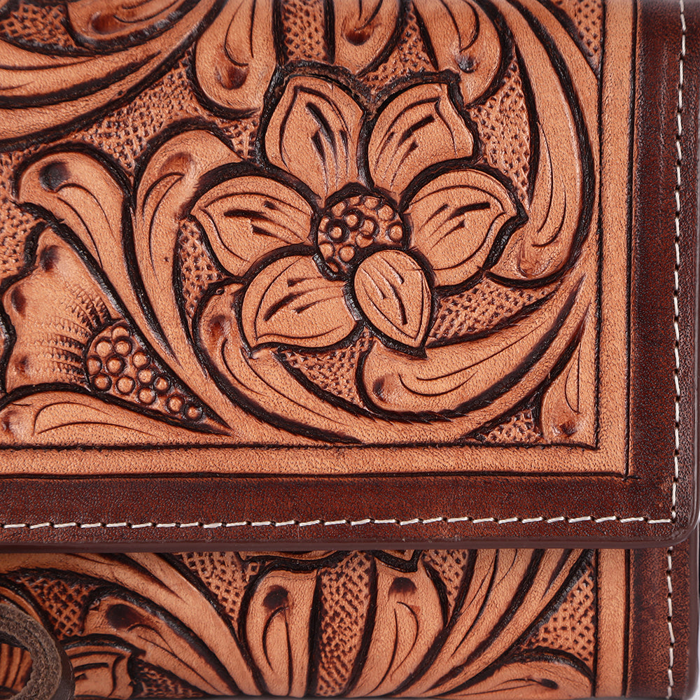 ADBGM295 Hand-Tooled Leather Clutch Wallet - Western Floral Design & Detachable Strap