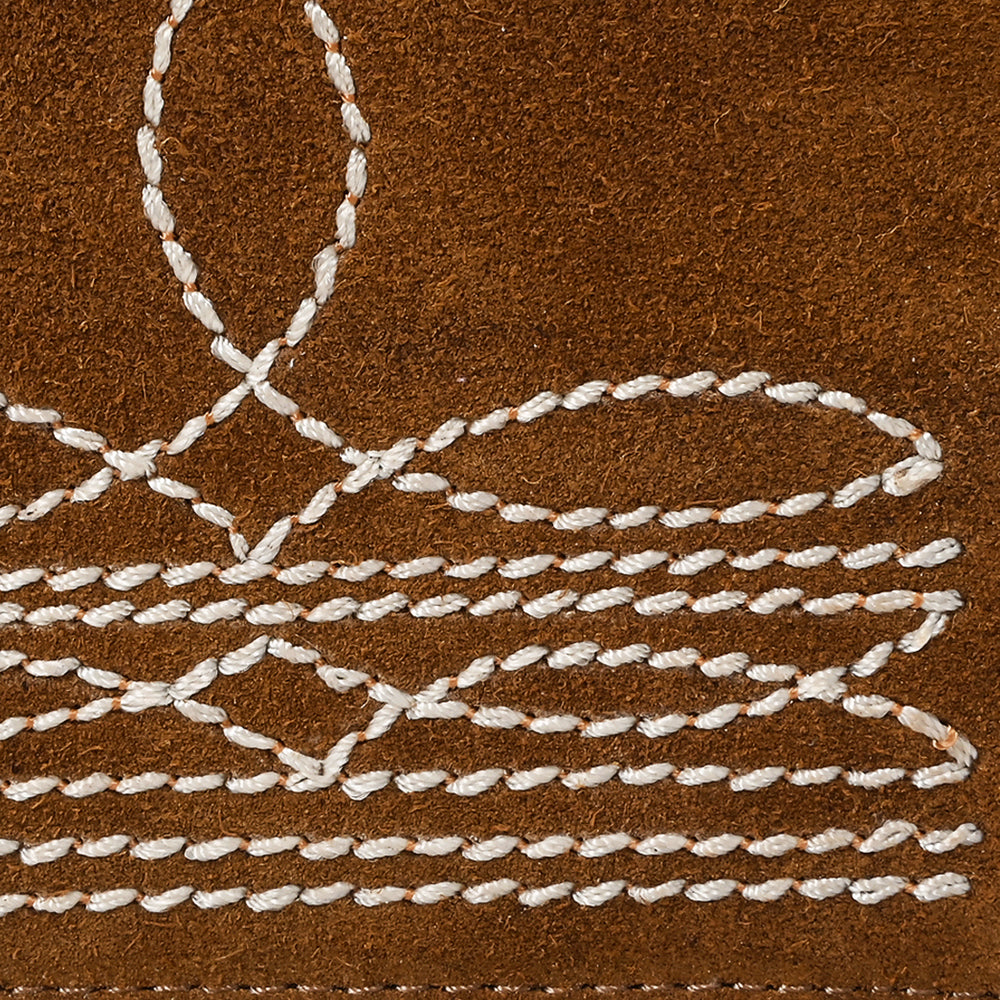 Bring a touch of rustic Western charm to your everyday essentials with this handcrafted bifold wallet. Made from suede leather, it features bold white Western-style embroidery across the front, offering a unique and rugged finish that stands out.