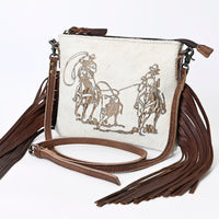 American Darling Western Leather Crossbody Bag Hair-On Cowhide with Fringe