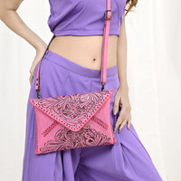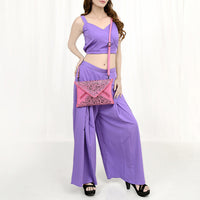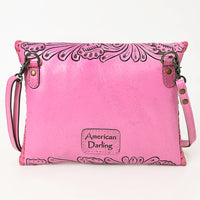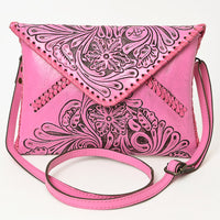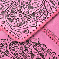 American Darling Hand-Tooled Pink Genuine Leather Western Envelope Bag - Floral Carved Crossbody