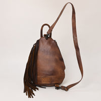 American Darling Handcrafted Western Leather Sling Bag with Floral Carved Design & Saddle Blanket Detail