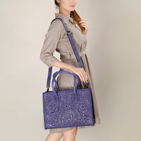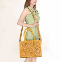 ADBG1131 Hand-Tooled Leather Tote-Western Floral Cowgirl Shoulder Bag