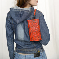 ADBG1132 Tooled Leather Western Wristlet Clutch-Handcrafted Cowhide Wallet by American Darling