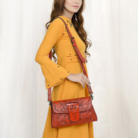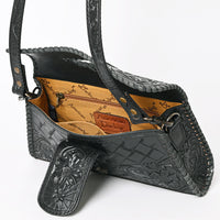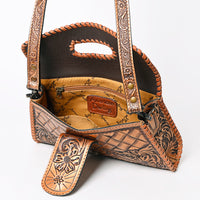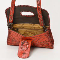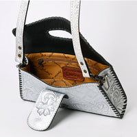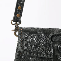 Discover the perfect intersection of rustic ruggedness and artisan elegance with this American Darling leather handbag. Handcrafted from premium vegetable-tanned leather, this bag features breathtaking hand-tooled floral carving on the front flap and body. The rich, leather is framed by thick, hand-woven whipstitch lacing, creating a durable accessory that embodies the authentic spirit of the West.