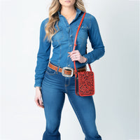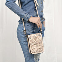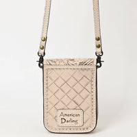 American Darling Hand Tooled Floral Leather Cell Phone Bag Western Crossbody