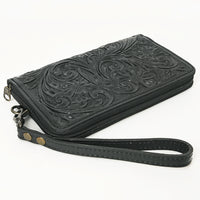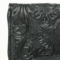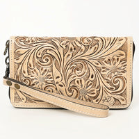This artisan-crafted clutch bag by American Darling is made from premium genuine leather and showcases detailed hand-tooled floral carving. Designed for everyday usability, it features a secure wristlet strap, a structured silhouette, and organized interior sections ideal for cards, cash, and essentials.