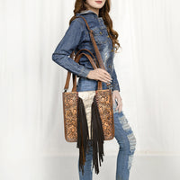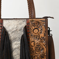 American Darling Cowhide Tote Bag | Tooled Leather Fringe Handbag