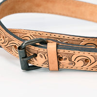 Key Features:- Features a hand-tooled floral leather top frame with a convenient carry slot.